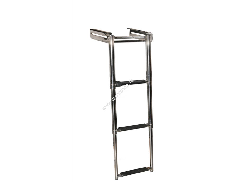 Výsuvný teleskopický rebrík z nehrdzavejúcej ocele AISI 316 s posuvným vedením, aplikácia pod plaveckou plošinou. Protišmykové schodíky z čierneho plastuDodatočné parametre