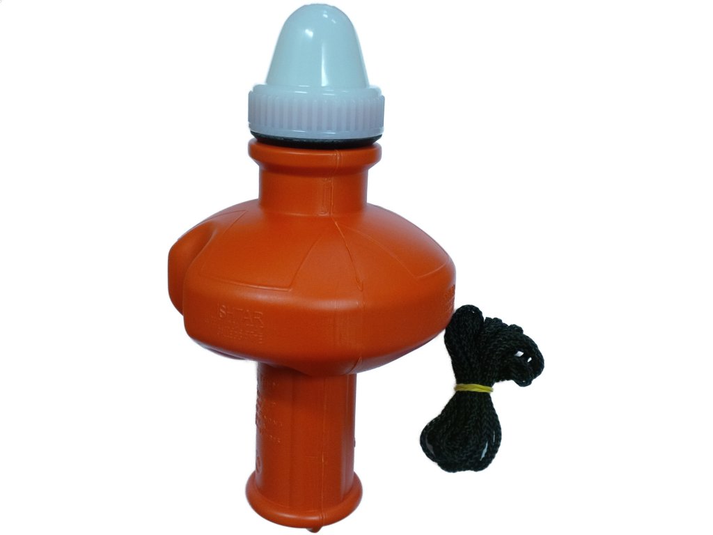 LED núdzové MED-SOLAS svetlo certifikované. Má veľmi jasné blikajúce LED svetlo (cca. 54 x / min). Nárazuvzdorné, vodotesné púzdro z PVC zaručuje dlhú životnosť. Nemá žiadny spínač, je aktivované automaticky v vzpriamenej polohe (svetlo smerom nahor). Núdzové svetle je vodotesné.