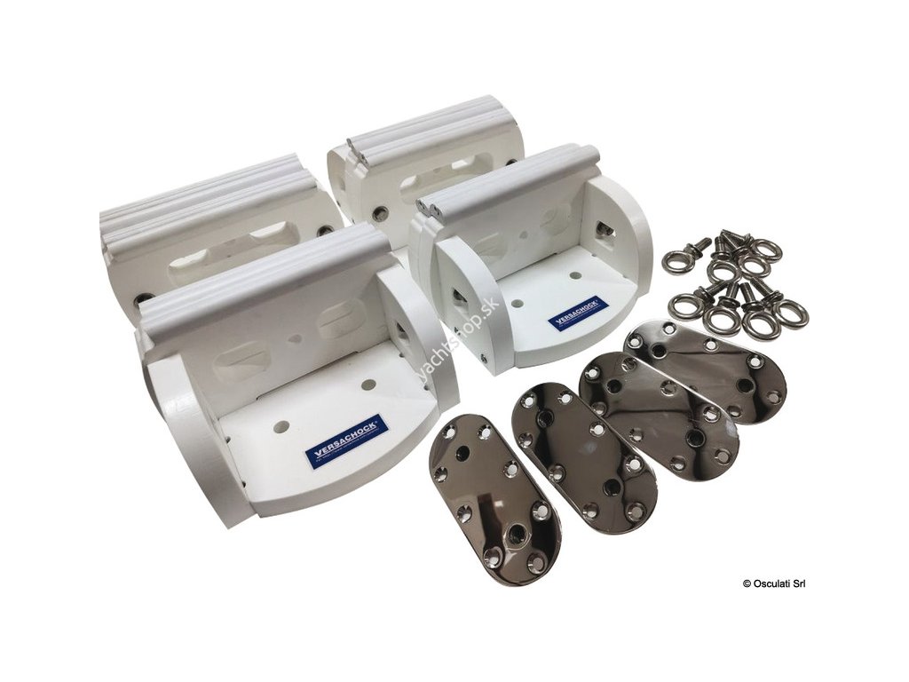 Nová generácia odnímateľných podpier VersaChock je ideálnym riešením na uskladnenie člnov, vodných skútrov na kormových plošinách, mostíkoch alebo palubách.Skladá sa zo 4 nízkych dosiek so zaoblenými rohmi z leštenej nehrdzavejúcej ocele 316, ktoré sa upevňujú na loď.