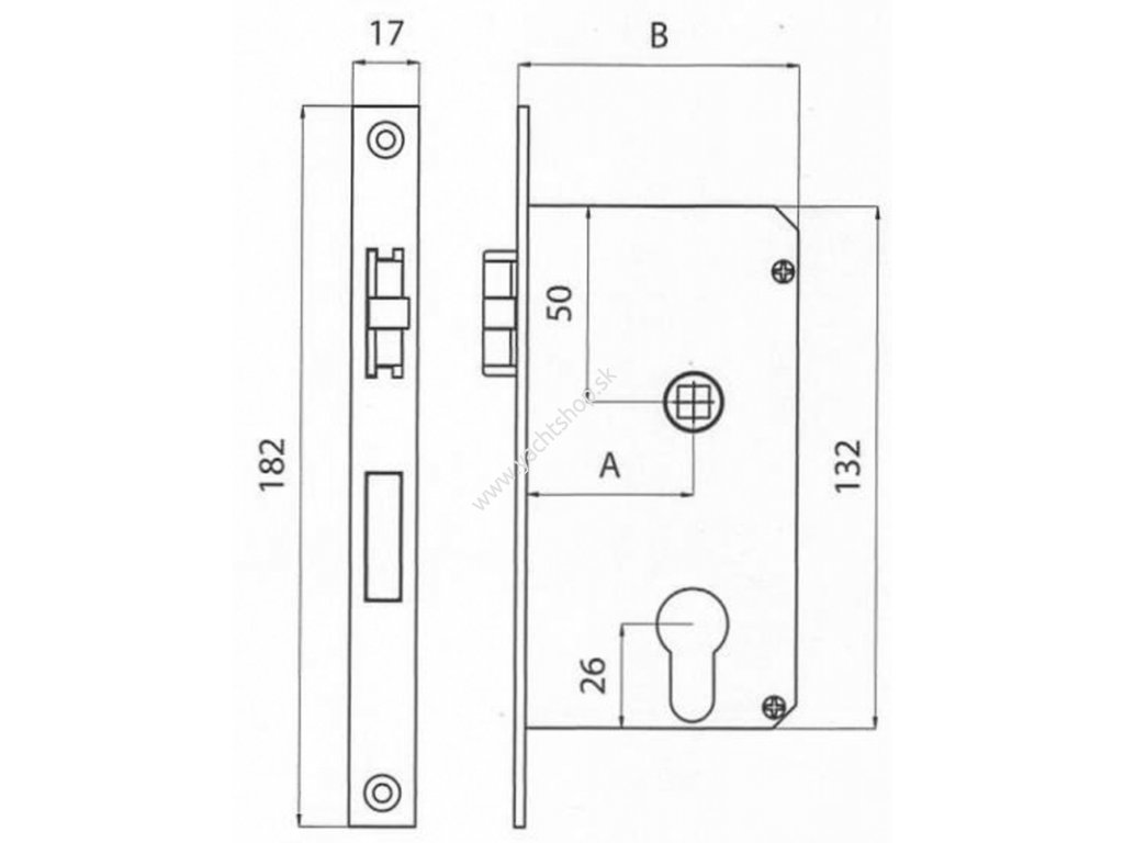 S antivibračným zámkom a systémom cylindrickej vložky. Štvorcový otvor mm 8. Skriňové krídlo mm. 132 x 70.Dodatočné parametre