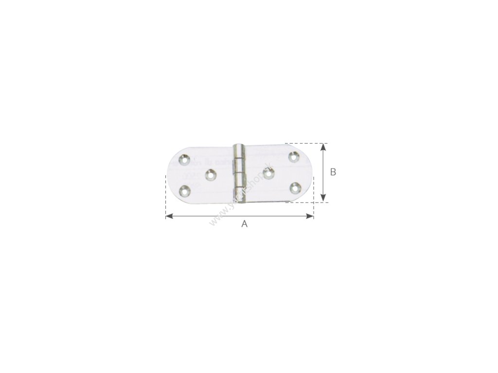 Závesy zo zrkadlovo leštenej nehrdzavejúcej ocele. Hrúbka mm. 1,5. Veľkosť: A 75 mm. B 20 mm.Dodatočné parametre