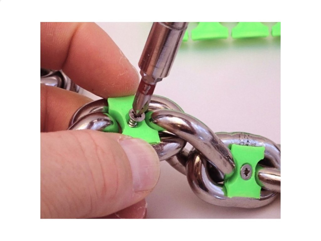 Sada farebných polymérových značkovačov reťaze odolných voči morskému prostrediu na jednoduché a čisté označenie kotevnej reťaze. Umiestnite dve časti označovača reťaze po stranách článku reťaze, jedna polovica má kolík, druhá dutinu a otvor na skrutku. Pevne ich stlačte, aby ste sa uistili, že sú zarovnané, a upevnite ich pomocou dodaných oceľových (8 - 10 mm) alebo mosadzných (12 - 14 mm) skrutiek. Systém upevnenia pomocou skrutiek zabraňuje uvoľneniu označovača reťaze a robí ho odolným voči všetkým druhom trenia: morské dno, kladky na prove a navijak. Značky reťaze sa dajú v prípade potreby odstrániť a premiestniť. Priložená príručka na to, aby ste mali vy a vaša posádka jasnú referenciu, stačí do jednej strany štítku vložiť počet metrov a vedľa neho príslušnú farbu, aby ste vždy mali dôkaz o meraní. Tabuľku možno pripevniť v blízkosti navijaka alebo v kotevnej skrinke pomocou skrutiek (sú súčasťou dodávky) alebo lepidla.Dodatočné parametre